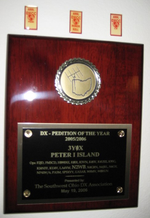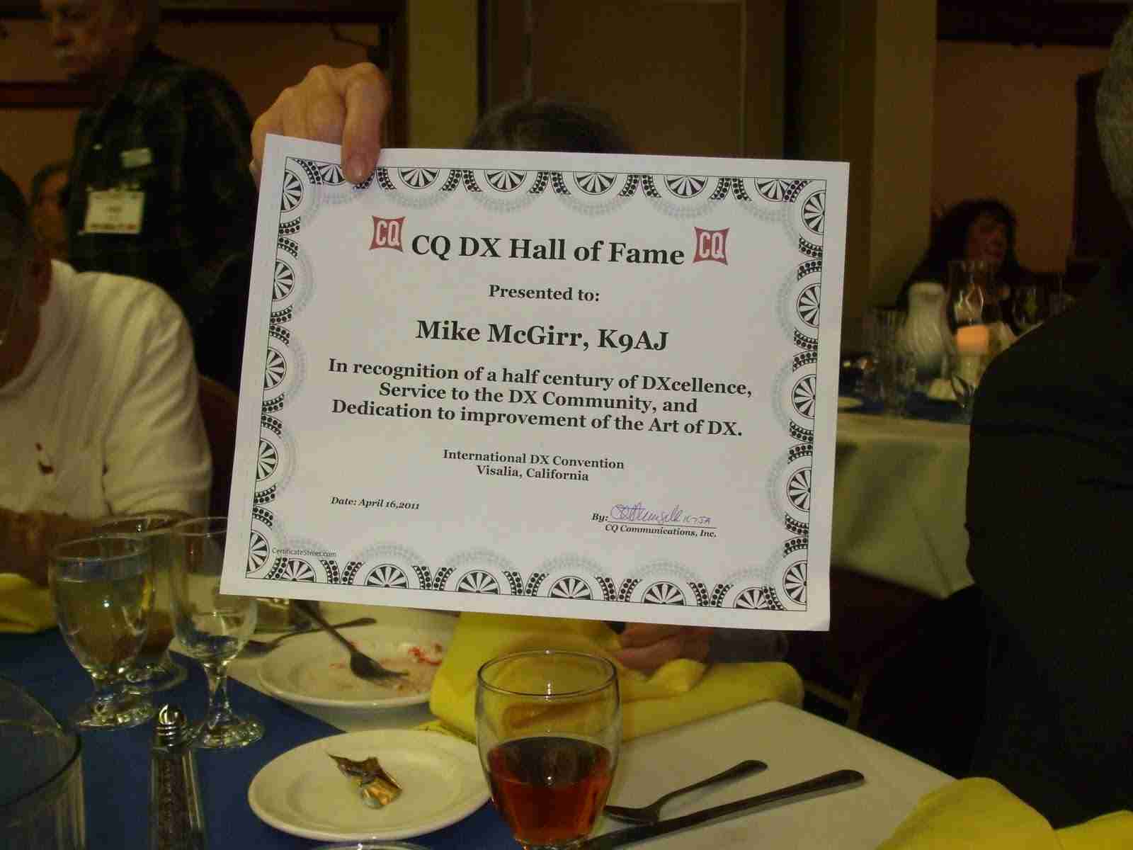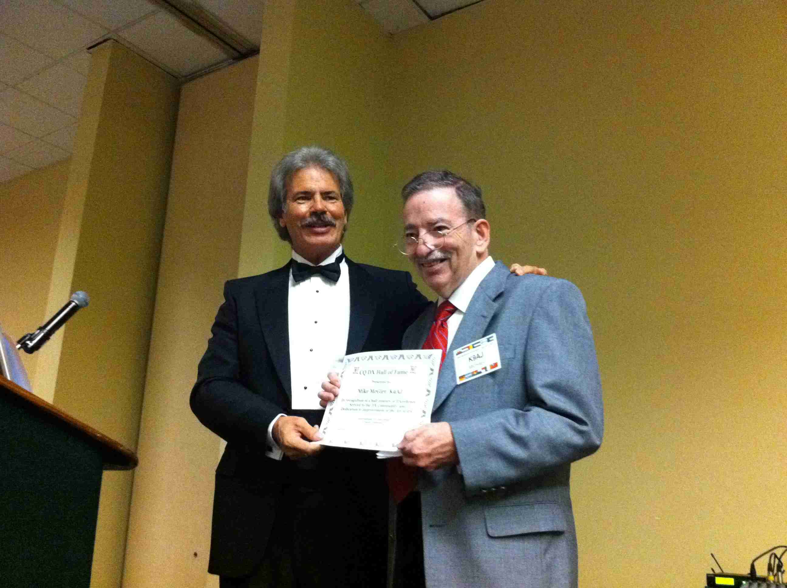Receiving CQDX Hall of Fame plaque in 2011 from Chip Margelli K7JA