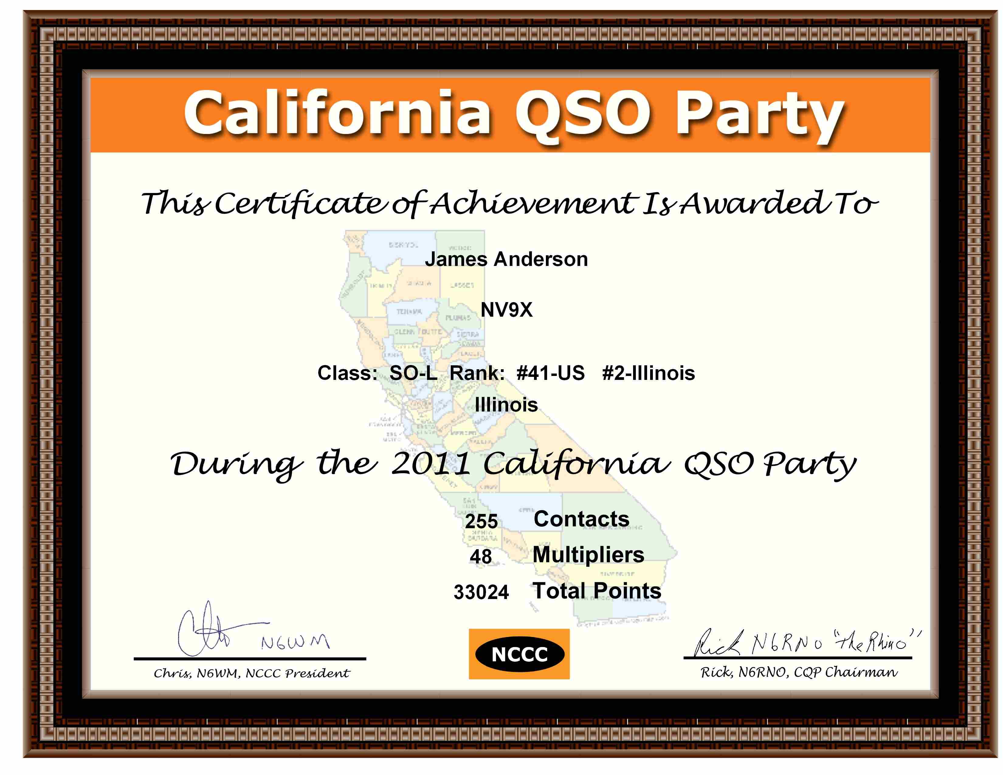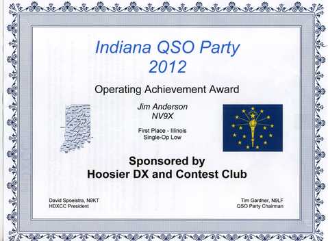 NV9X IN QSO Party 2012 1st Place IL