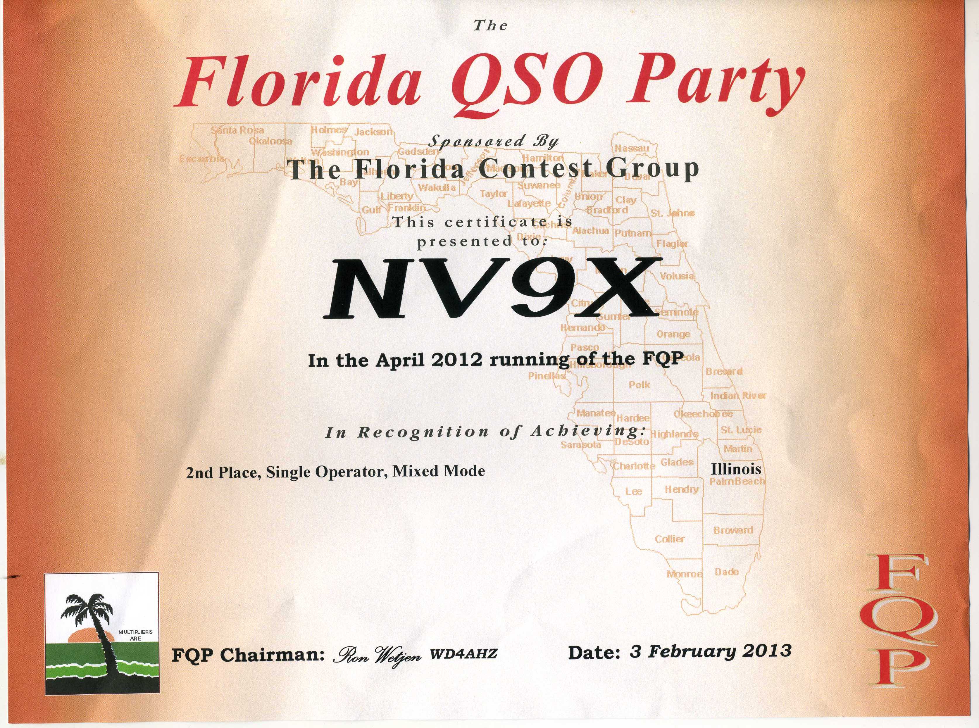 NV9X FL QSO Party 2012 2nd