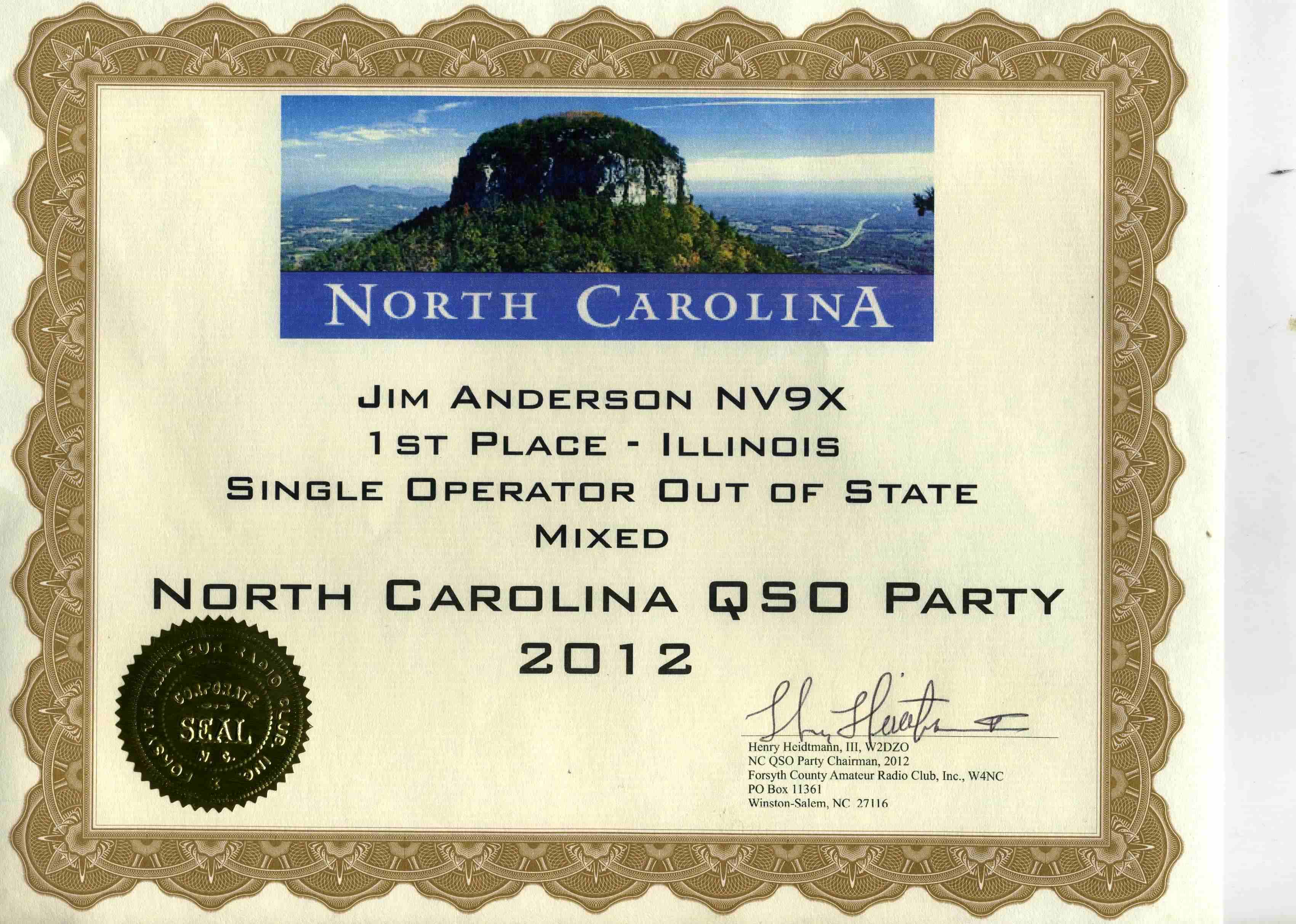 NV9X NC QSO Party 2012 1st Place Out of State