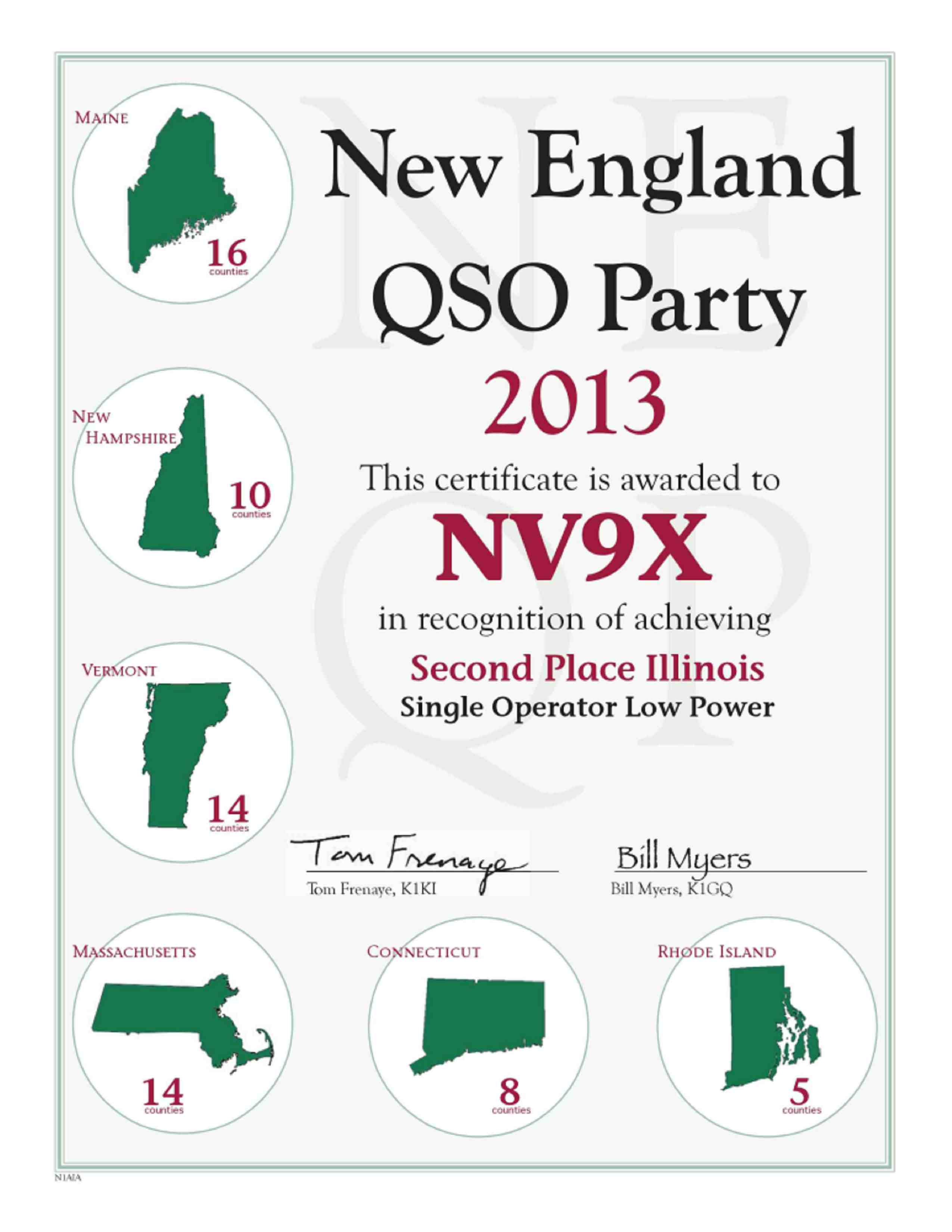NV9X NE QSO Party 2012 2nd Place IL-LP