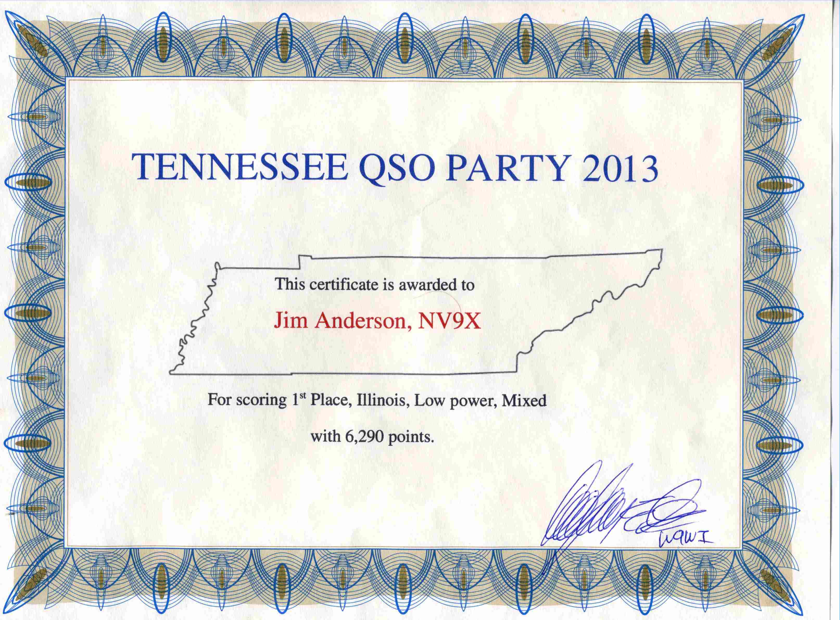 NV9X TN QSO Party 2013 1st Place IL-LP