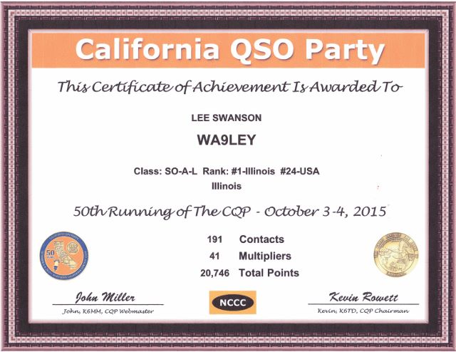 WA9LEY 2015 CA QSO Party #1 IL