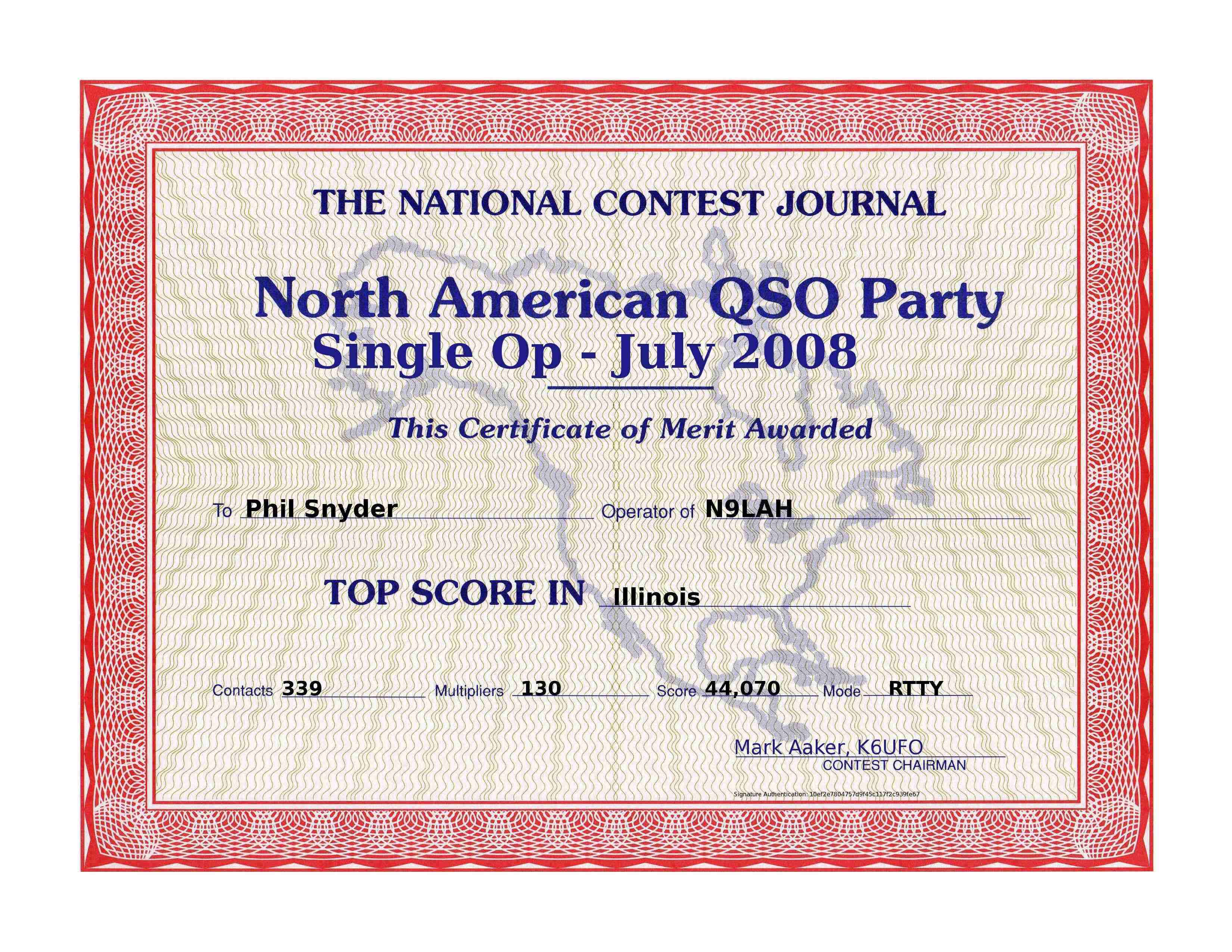 N9LAH '08 NAQP-RTTY JULY Top Score IL