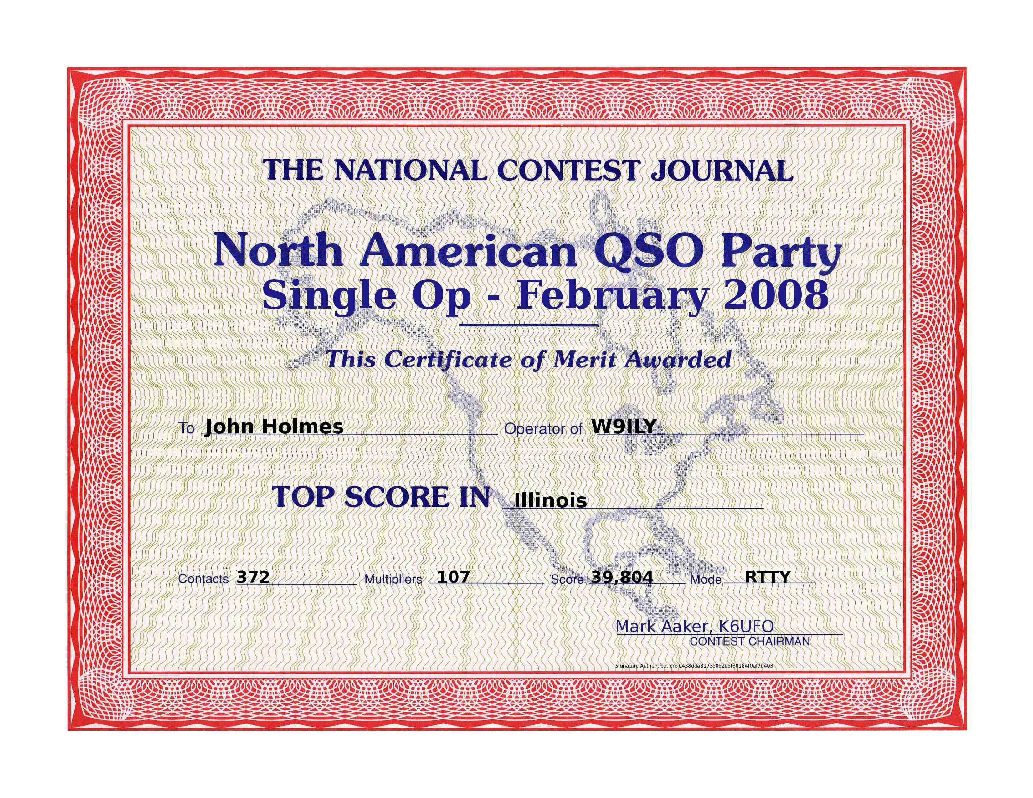 W9ILY '08 NAQP-RTTY February Top Score IL