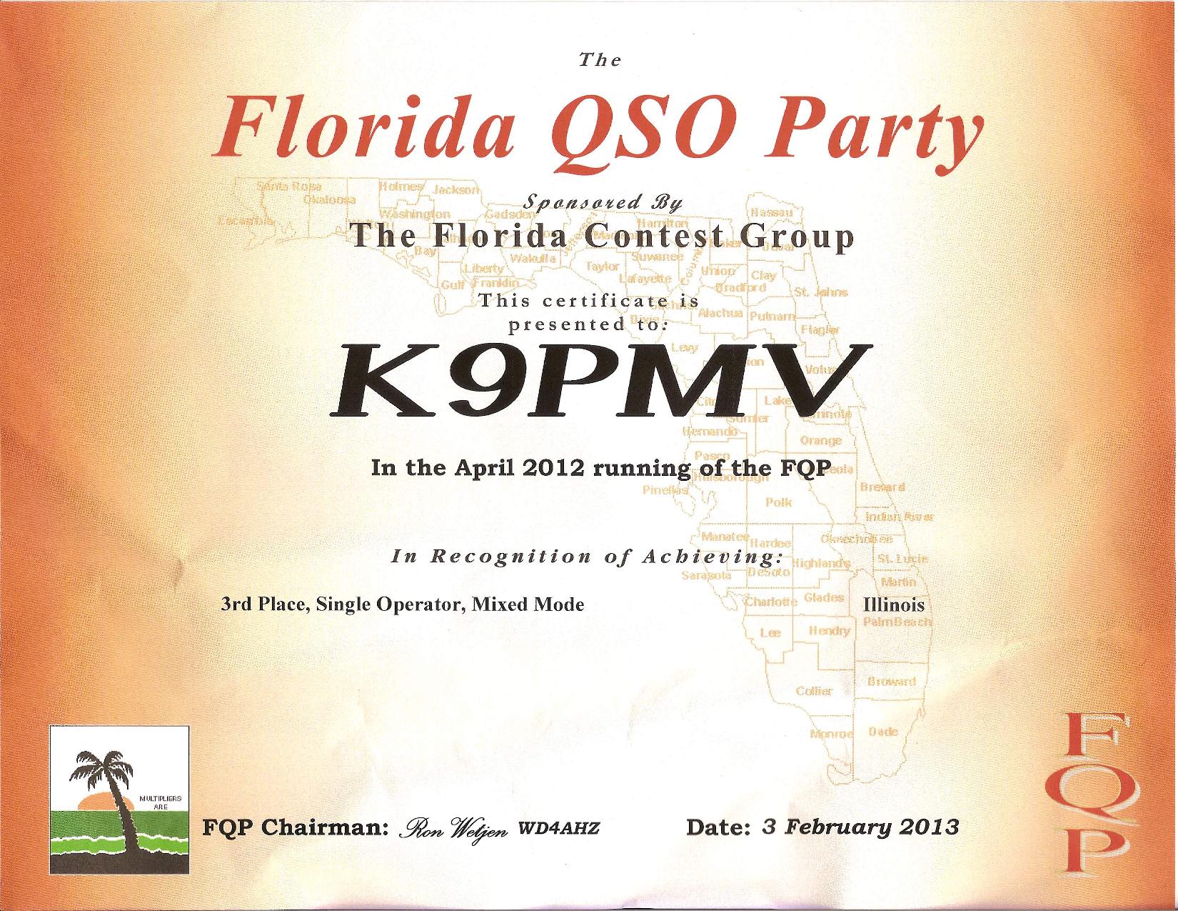 K9PMV FL QSO Party 2012 3rd pl