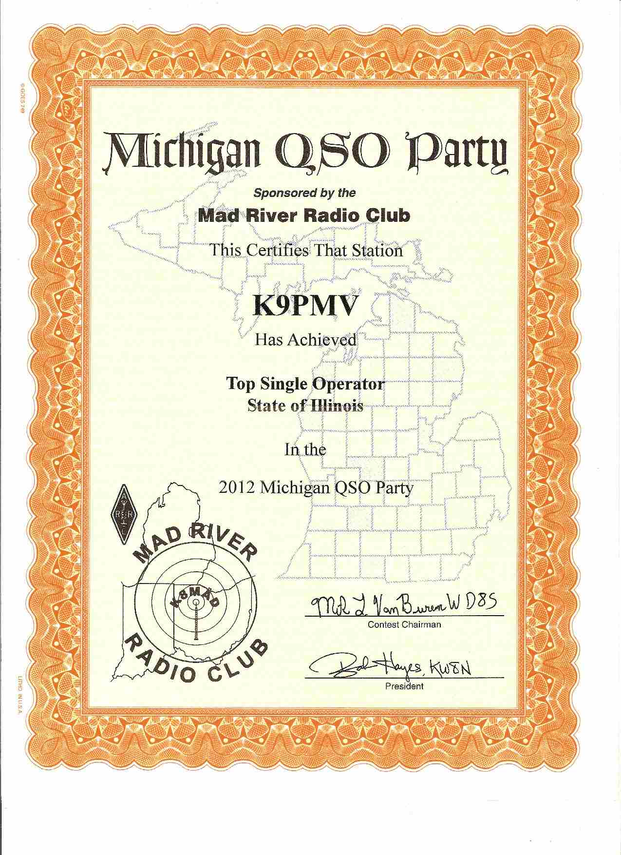 NV9X IN QSO Party 2012 1st Place IL