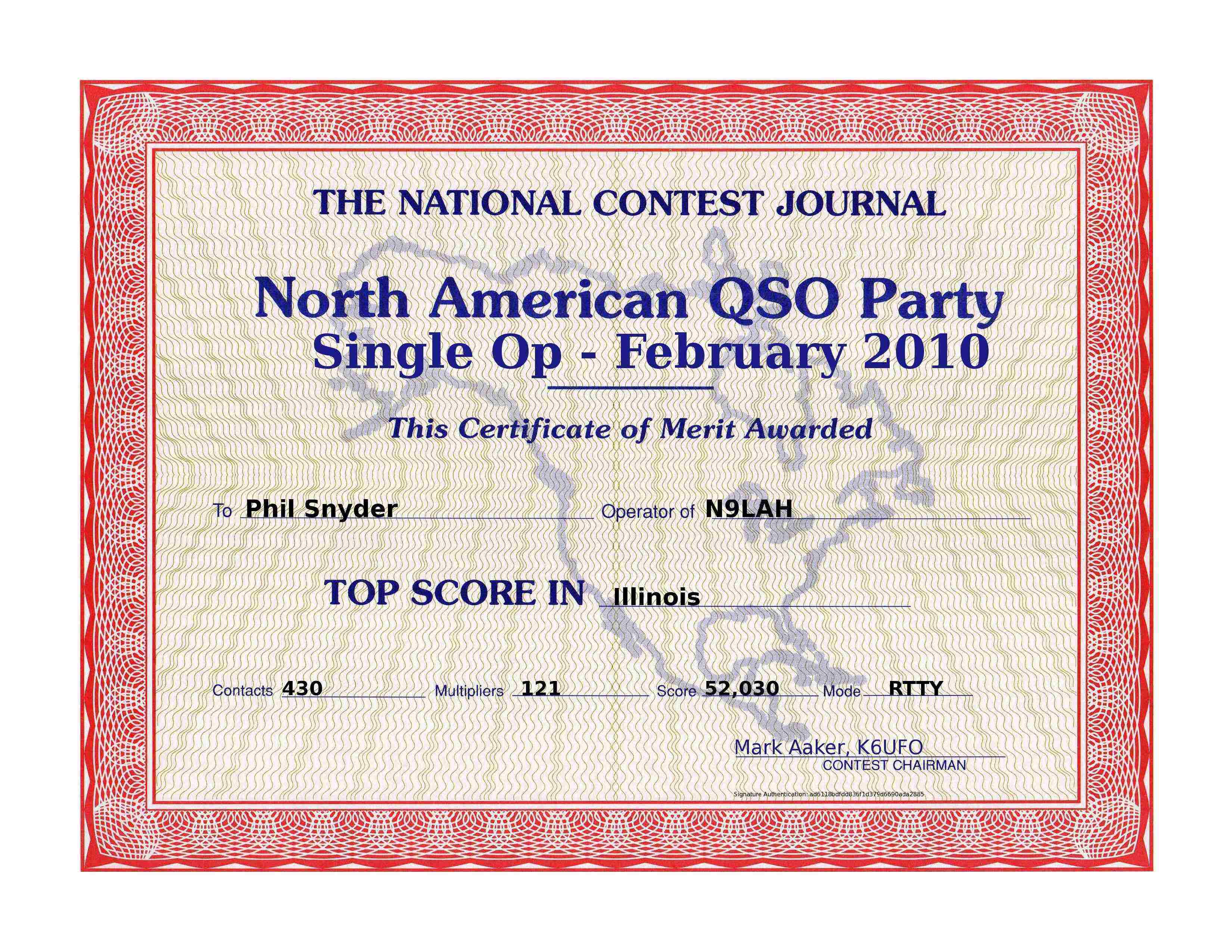 N9LAH '10 NAQP-RTTY FEB Top Score IL