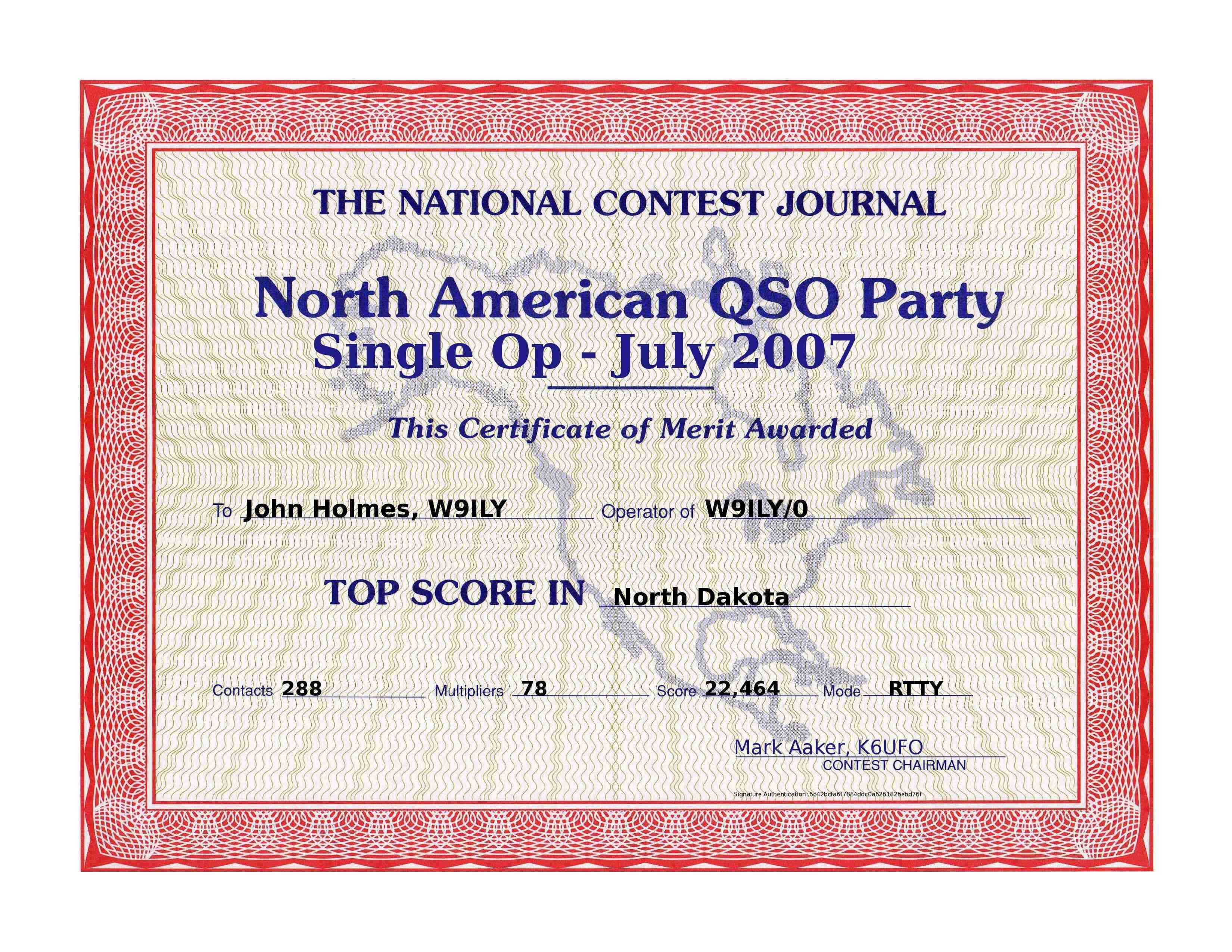 '07 NAQP-RTTY JULY Top Score