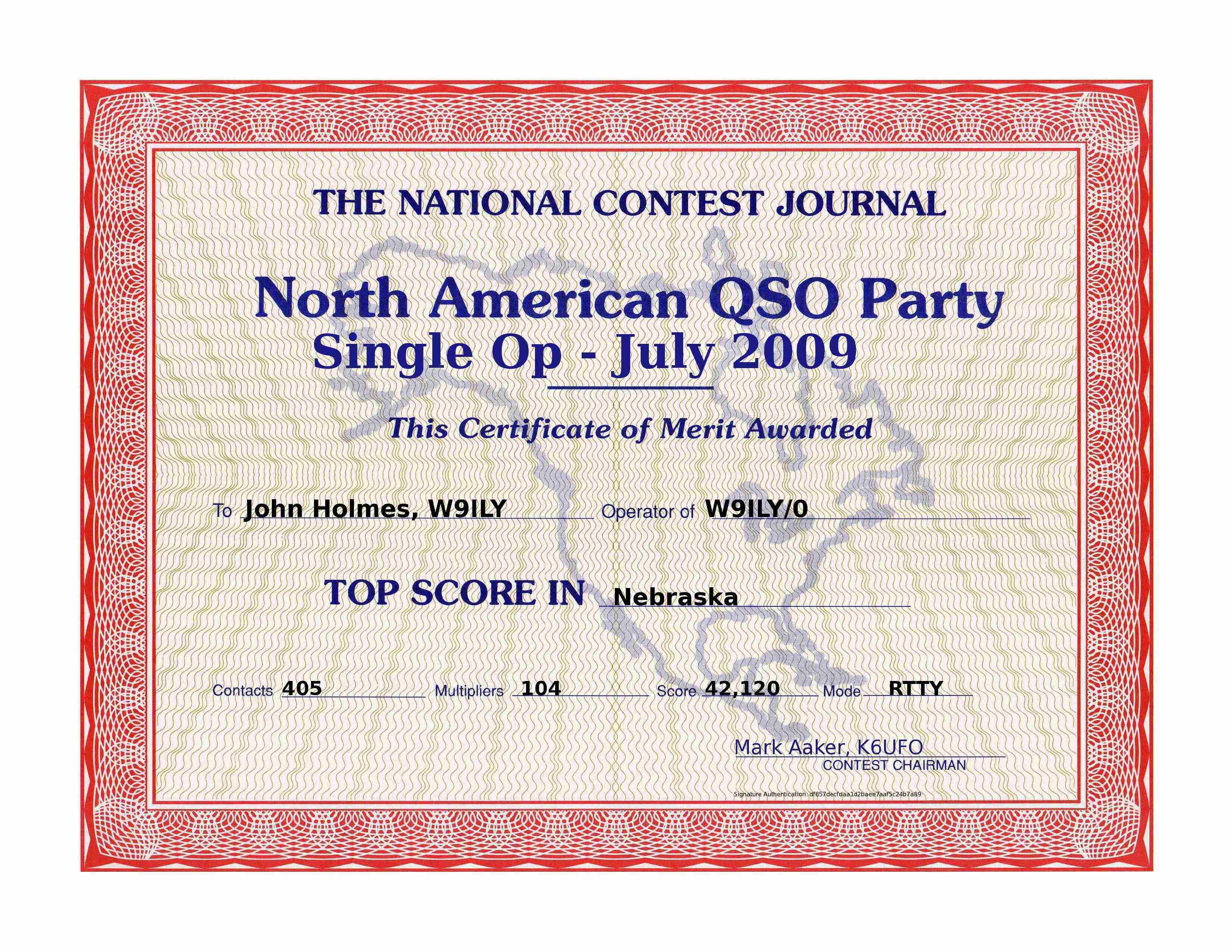 W9ILY/Ø '09 NAQP-RTTY JULY Top Score