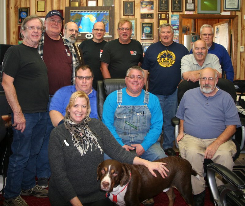 | We operated Special Event station W9C from October 31, 2016 through November 6, 2016 commemorating great American icon Walter Cronkite's 100th birth date. At least nine stations operated from their home QTH locations including AI9L, WA9LEY, NV9X, W9ILY, K9EL, K9CJ, NV9L, WD9HSY and K9GA. On Saturday, 17 Metro members met at the QTH of NV9L/WB9Z in Crescent City and put HUNDREDS of contacts in the W9C log. Attending were K9DRS, K9LOT, K9LSH, K9NU, K9PY, K9TP, K9ZAV, KA9BBQ, KA9ZZT, N9IHZ, N9LAH and XYL Cindy, N9TK, N9VVO, NV9L, W9ILY, WA9LEY and WB9Z. The Club provided lunch, snacks and drinks for the group courtesy of N9TK who did all the shopping. Several club members had not previously had the opportunity to operate in a "pileup" situation and they gained a lot of great experience. Jerry gave the club a tour of his super station and antenna farm that was very impressive. Val, NV9L, who is one of the presenters on Ham Nation https://twit.tv/shows/ham-nation , had highlighted special event activity, in particular the W9C activity, on her weekly broadcast and set up a live feed on Facebook with a link from QRZ.COM so the world could see our operation in action. There were hundreds of views to the Facebook feed and over 3,700 QRZ.COM lookups! A total of nine stations operating from their home QTH made a total of 1,933 contacts on CW, SSB, RTTY, PSK31, PSK63, PSK125 and FM. A number of photos of members operating were taken and here they are. Left to right back row: W9ILY, K9NU, N9LAH, KA9BBQ, WB9Z, N9TK, KA9ZZT, WA9LEY Left to right front row: NV9L, K9LOT, K9TP, K9ZAV and of course NV9L's buddy Beasley