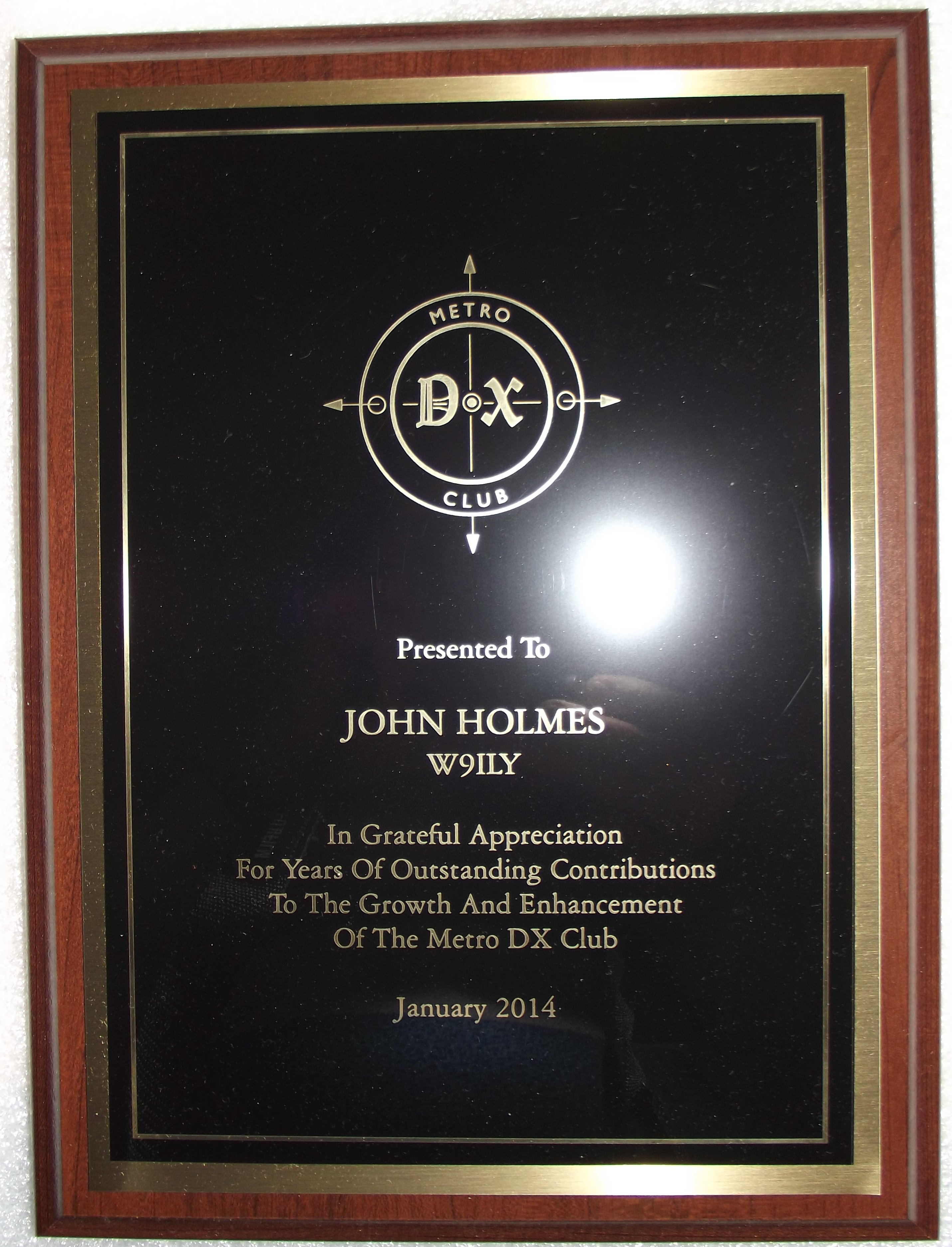 W9ILY received a beautiful plaque