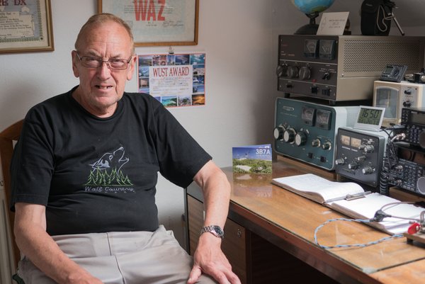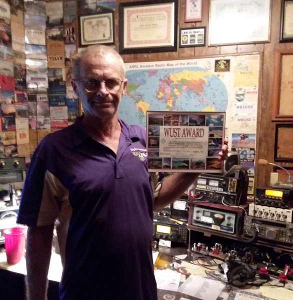 Your award came in this morning and I am delighted to have it and the nice comments about QSOing the 16 !!! It will go along with my DXCC new sticker for 385 countries on my Mixed Honor Roll #1 and top GM...Delighted!!!! 73 Les GM3ITN. Here is a photo of Les with his WUST Award.